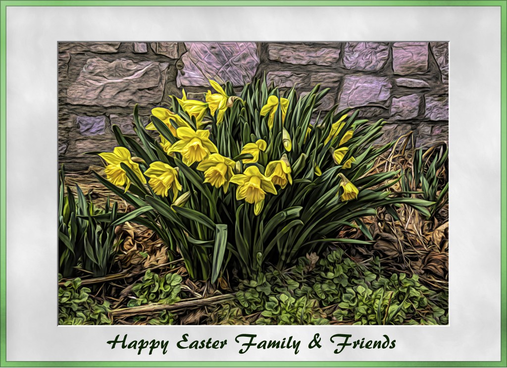 I made it a point to always visit the three museum buildings at the lake. I couldn’t resist taking photos of the daffodils at Robinson House. They were beautiful this year; in fact they were so beautiful that I decided to use one of the photos in an Easter greeting.