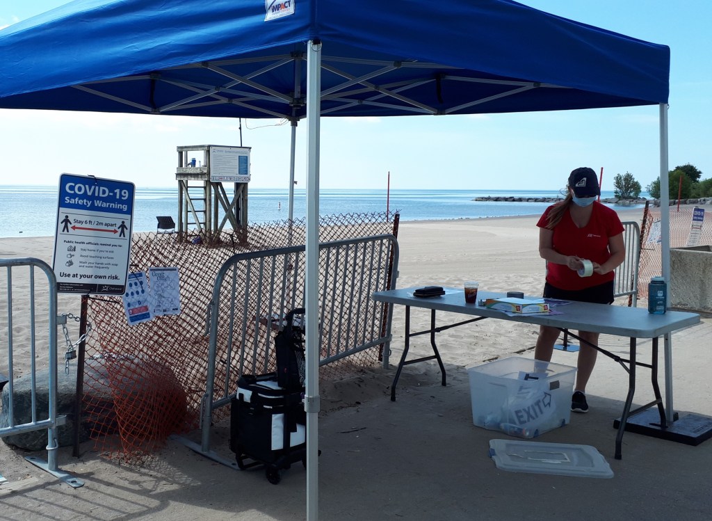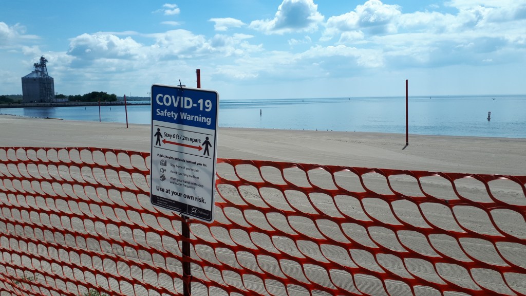 Anyone I encountered along the lakefront trail or through the park stayed within the social distancing guideline. It pleased me because I was afraid that if the rules were broken then the privilege would be taken away. A few people had been on the beach, but I don’t think it was intentional. They just didn’t see the sign! In the beginning, I didn’t see it either but thankfully a kind man informed me of the sign as well as the presence of bylaw officers. If my memory is correct, the beach sign was installed sometime in mid-March.