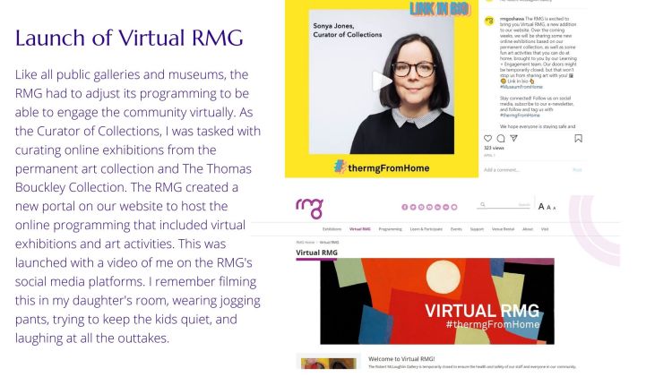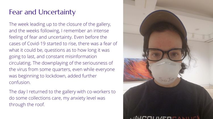Thank you to our friend and community partner Sonya Jones, Curator of Collections at The Robert McLaughlin Gallery, for her recent contribution to our COVID-19 project. She created a photo journal detailing how she has personally and professionally experienced the pandemic. Thank you Sonya for sharing your stories.