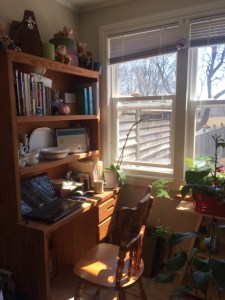 My little corner of my little kitchen has become my office – provides for easy access to the coffee. My kitchen table doubles as a work space for spreading out various papers and binders. I’m very lucky that this aspect of my job is very easily achieved while working remotely. I have access to our shared network, I have all of our social media sites bookmarked and constantly open in several tabs of my browser. What I miss most of all is immediate collaboration that takes place in the office, of going downstairs and asking Jenn’s opinion and historical expertise, of asking Melissa about artefacts, bouncing ideas off Jill, and telling Laura my most outlandish ideas simply to get a reaction. Simply said, I miss the team.